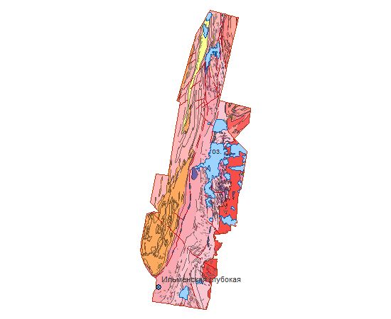 Геологическая карта Ильменского заповедника (по Юрецкому В.Н., 1982.)