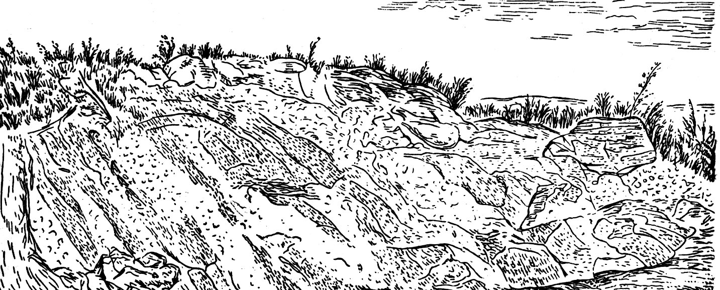 | Пегматитовые линзы в миаскитах, располагающиеся согласно сланцеватости последних